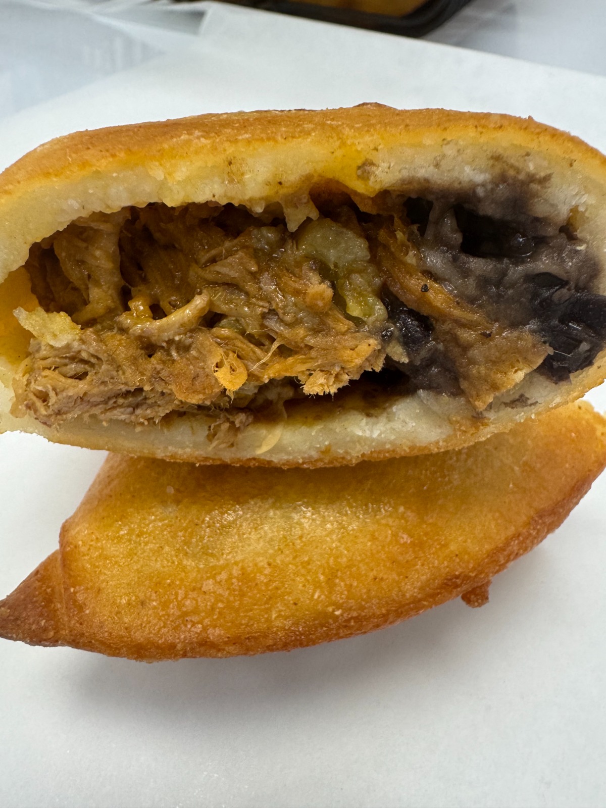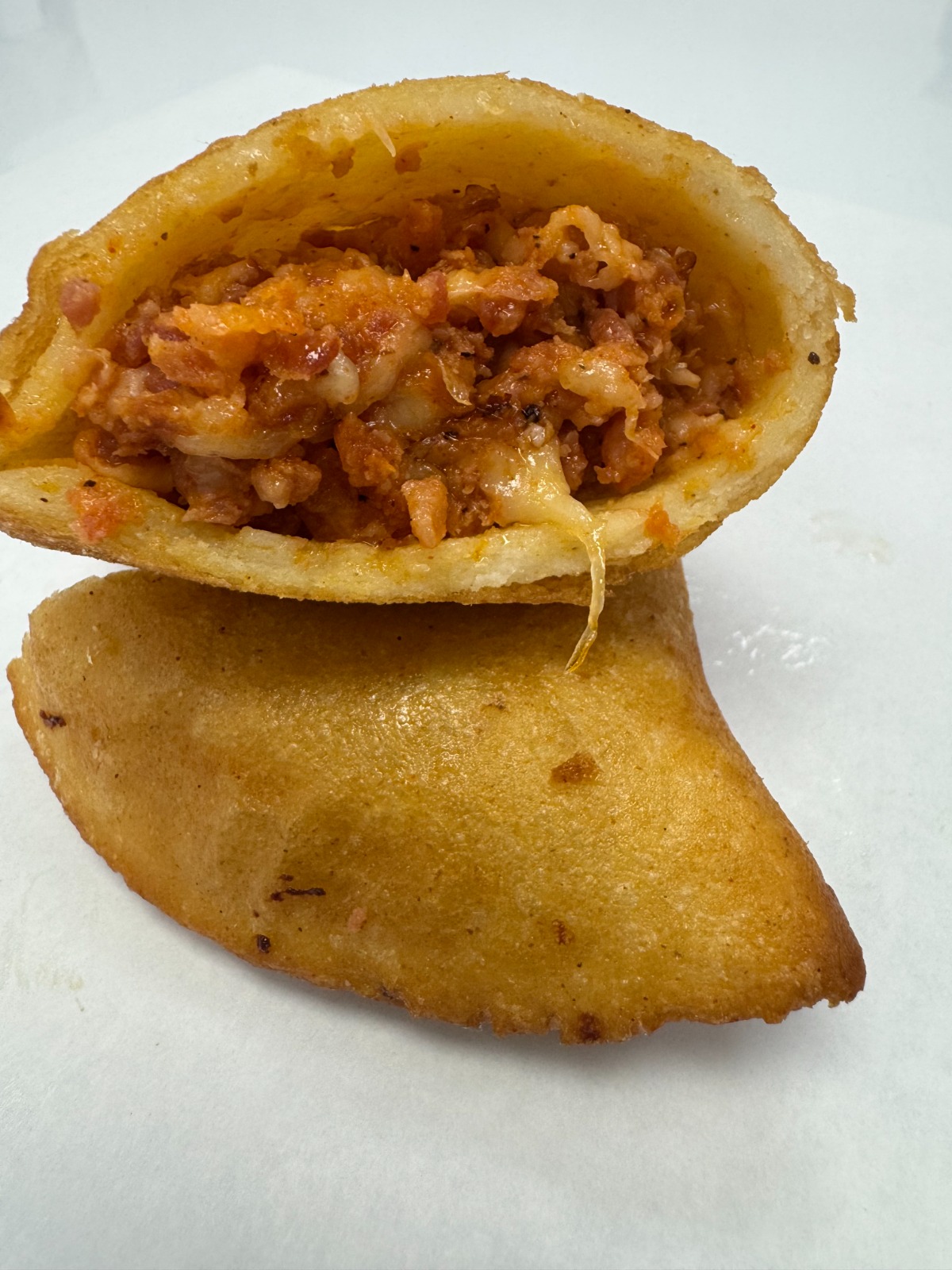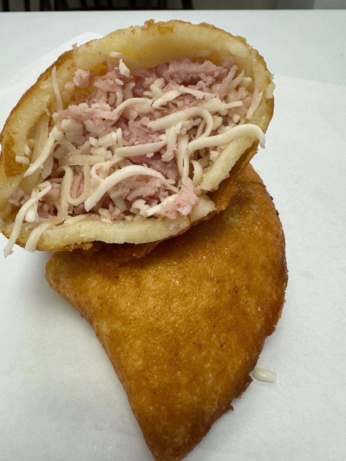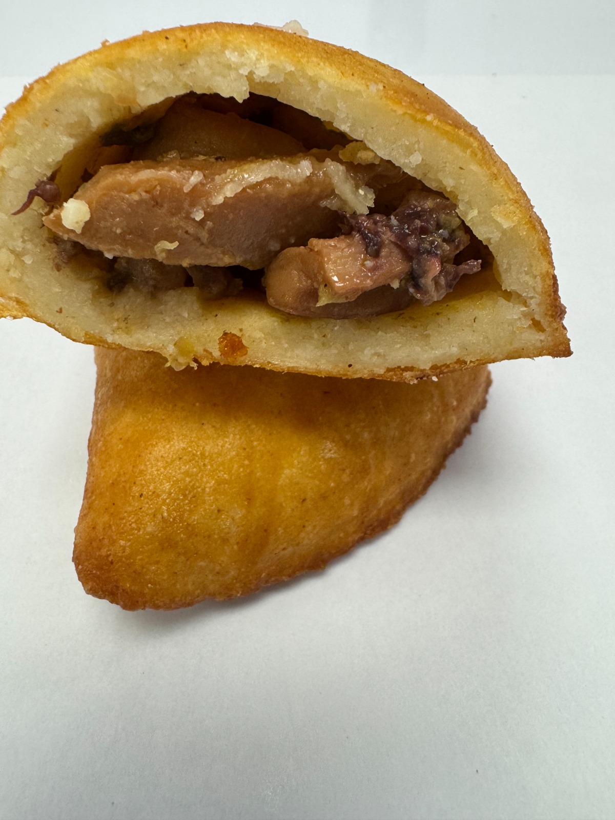 Empanadas Camarones Cazón Chorizo con queso Dominó Jamón y queso Mariscos Mechada Molida Molida con queso Pabellón Pelúa Platano con queso Pollo Pollo con queso Queso Salchicha