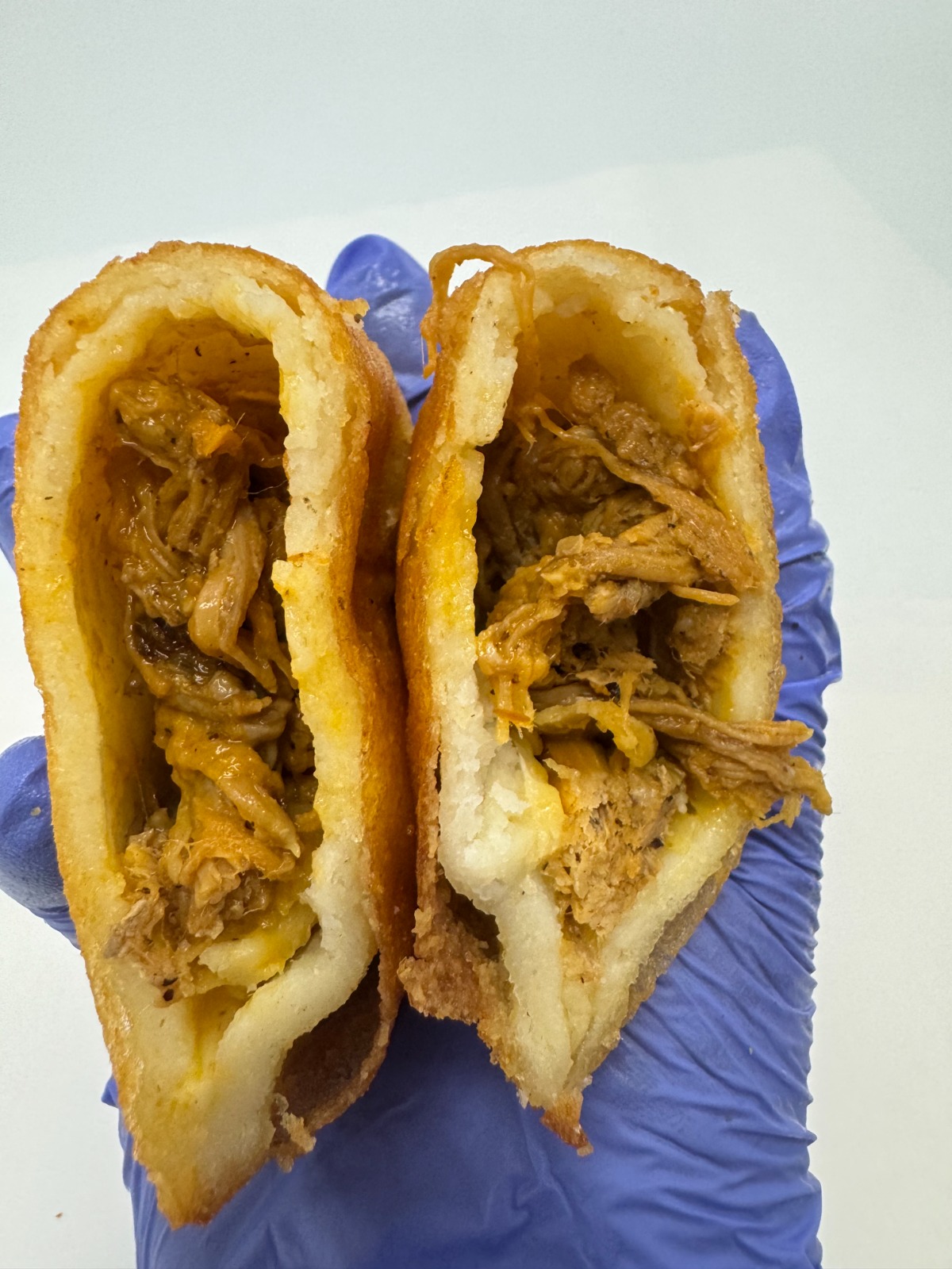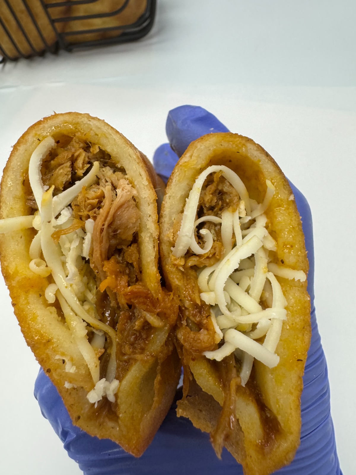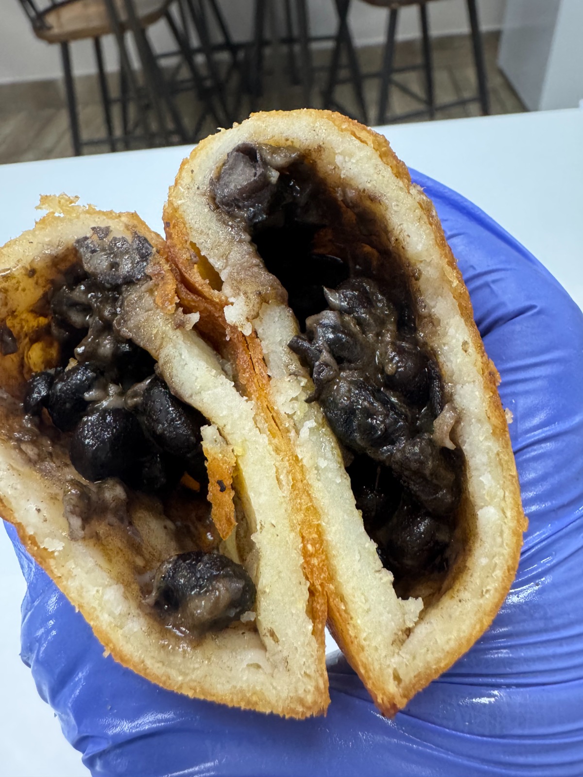 Empanadas Camarones Cazón Chorizo con queso Dominó Jamón y queso Mariscos Mechada Molida Molida con queso Pabellón Pelúa Platano con queso Pollo Pollo con queso Queso Salchicha