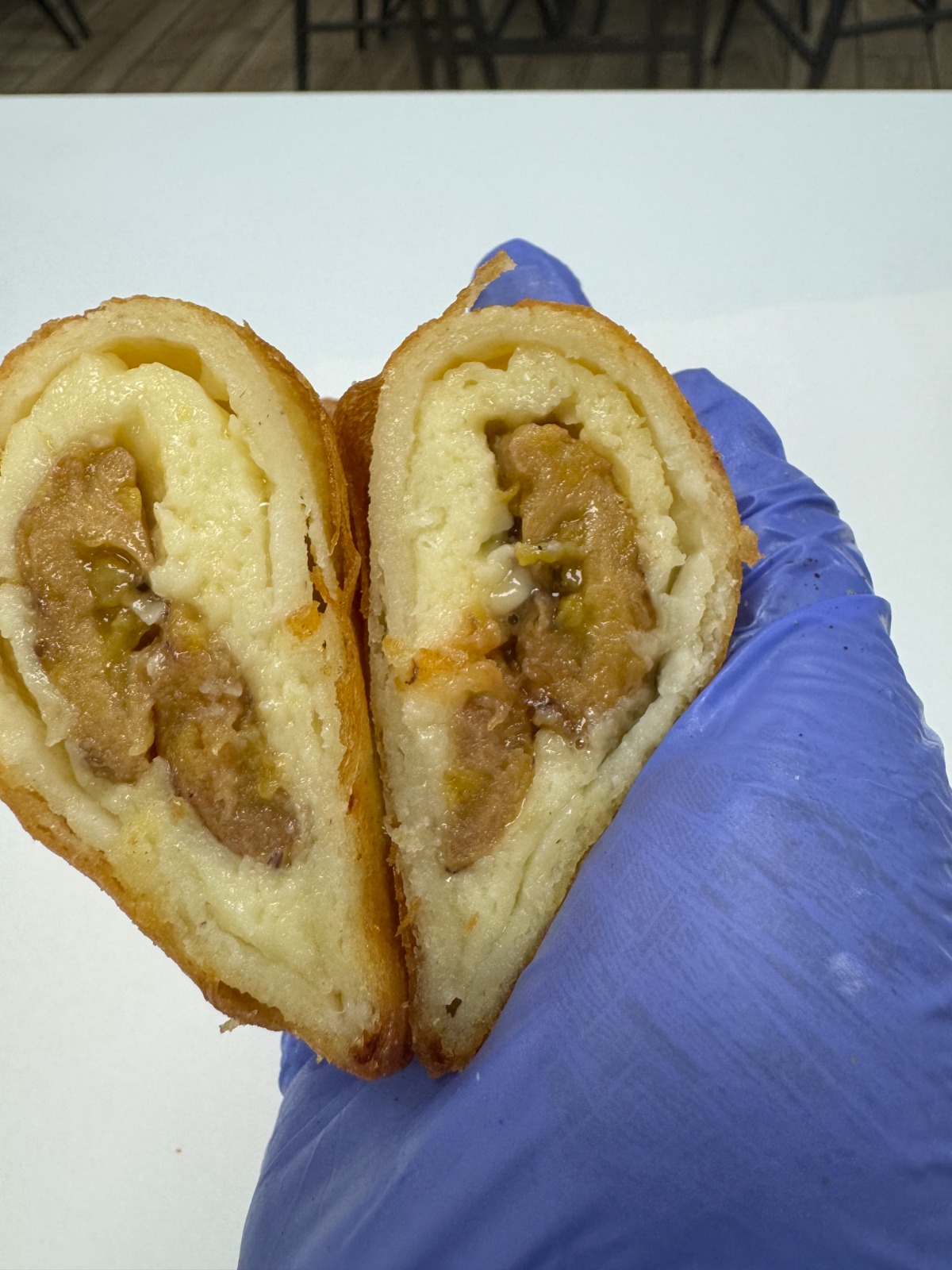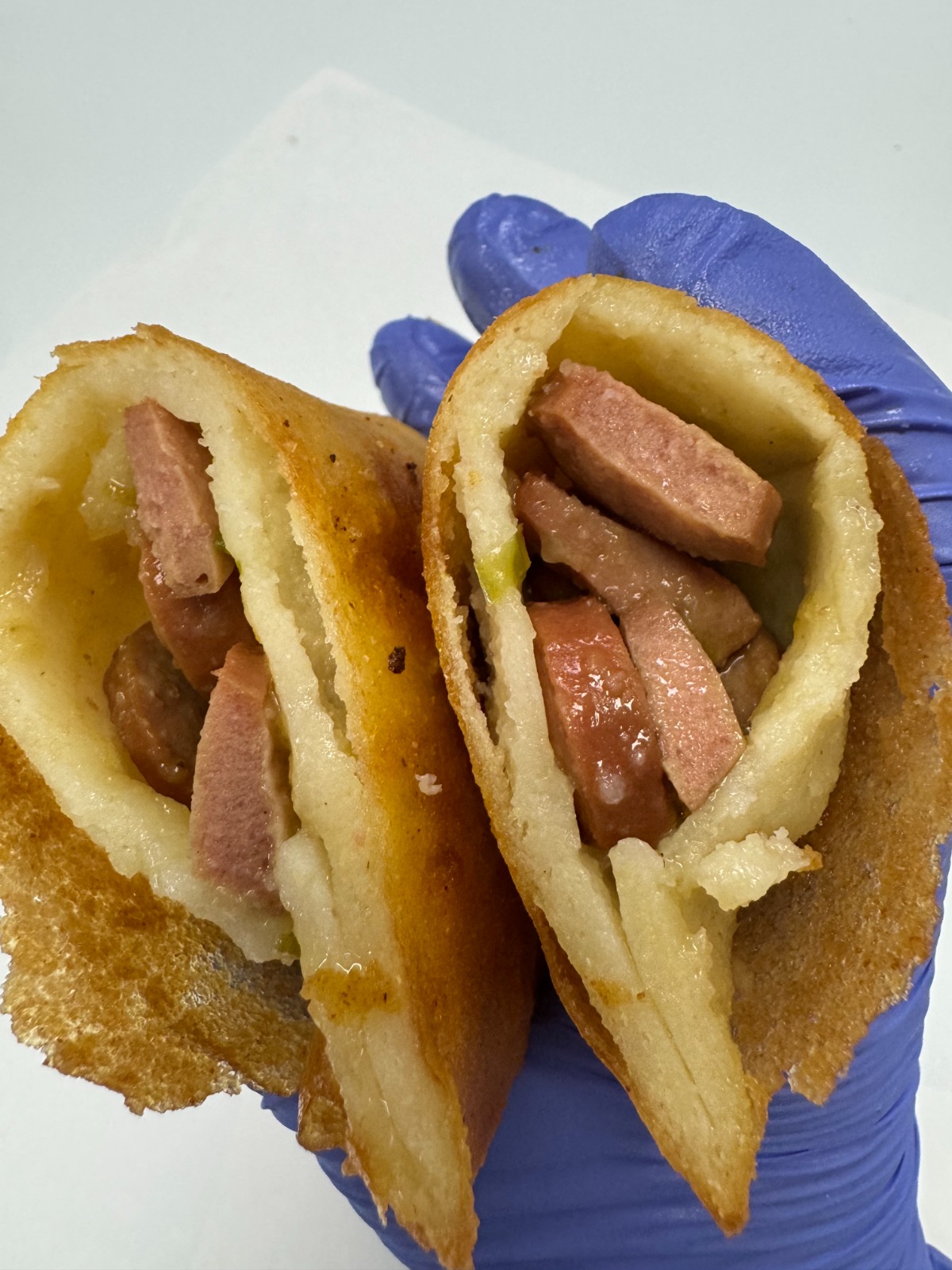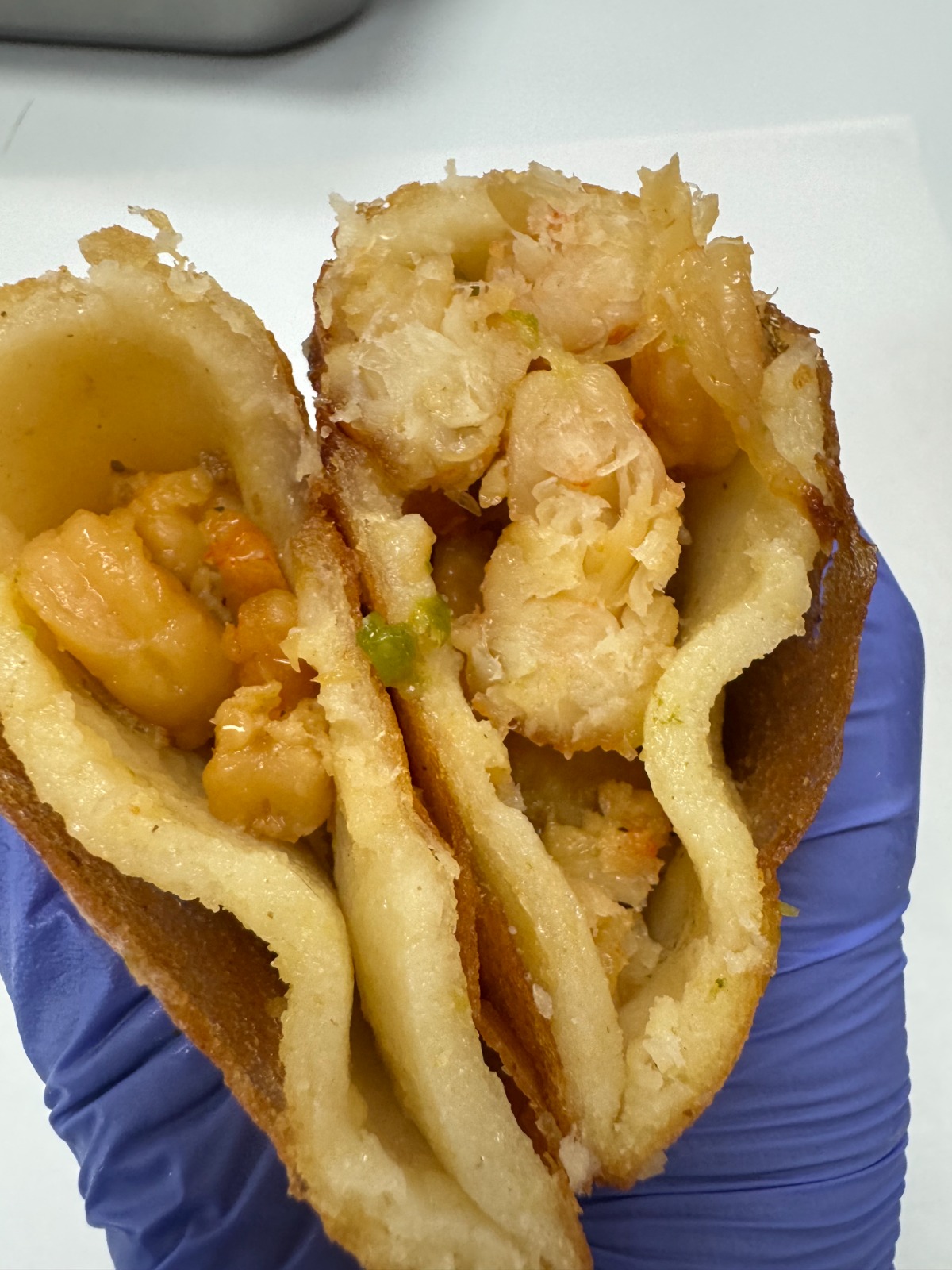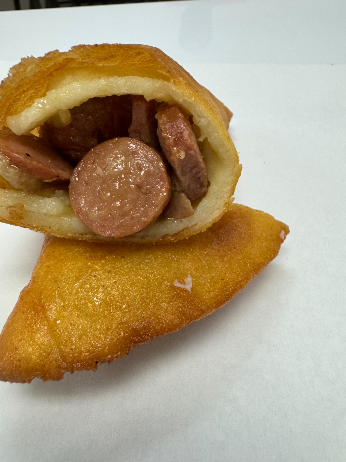 Empanadas Camarones Cazón Chorizo con queso Dominó Jamón y queso Mariscos Mechada Molida Molida con queso Pabellón Pelúa Platano con queso Pollo Pollo con queso Queso Salchicha